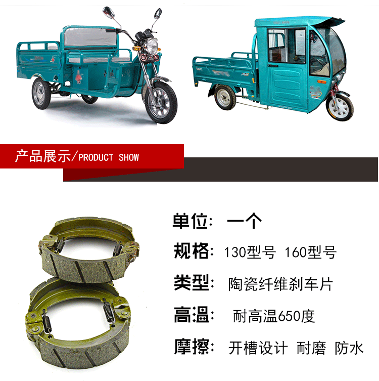 Electric tricycle brake sheet universal abrasion resistant waterproof 130 type brake shoe block thickened 160 type rear brake block