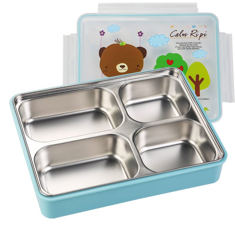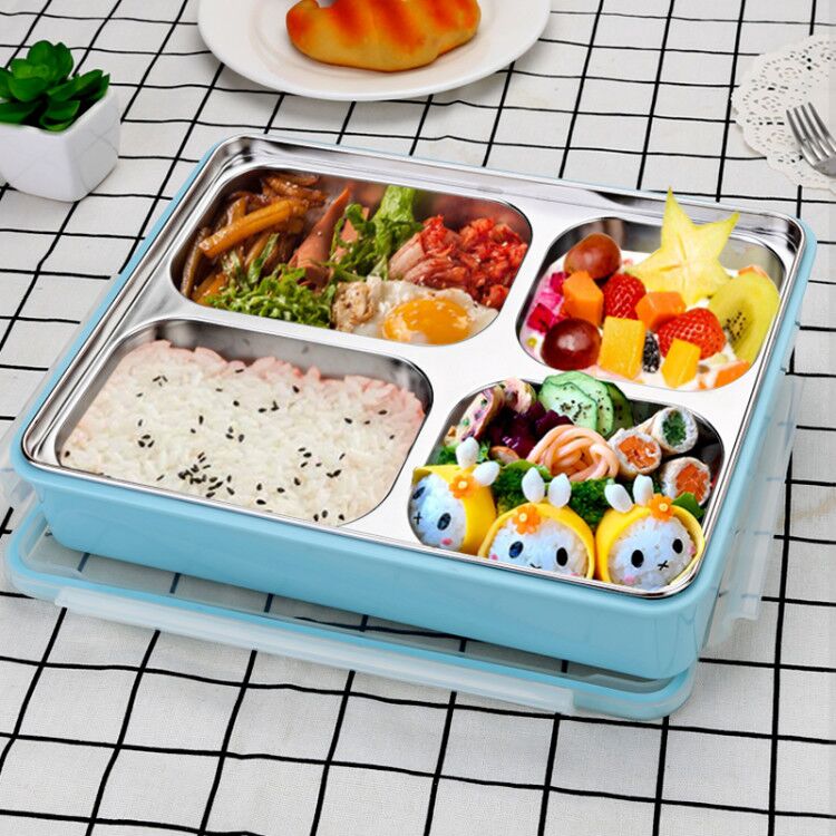 Student Lunch Box Stainless Steel 304 Material Children Meal Kit Insulation Large Capacity Four-Divided Elementary School Lunch Box
