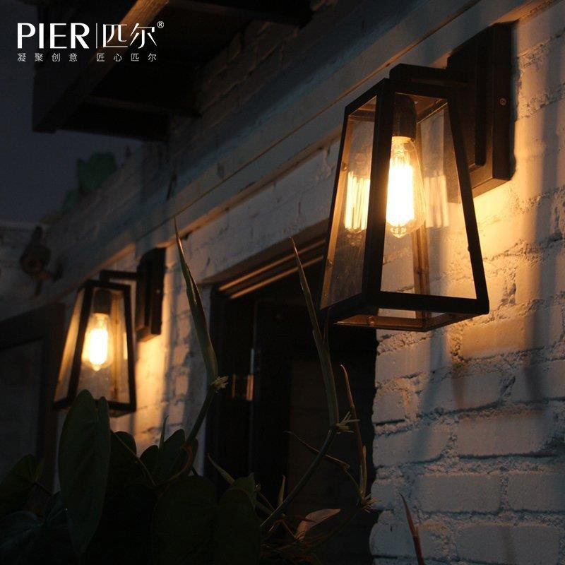 American loft industrial style creative retro glass box waterproof outdoor lamp Nordic balcony porch aisle wall lamp