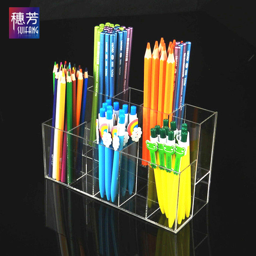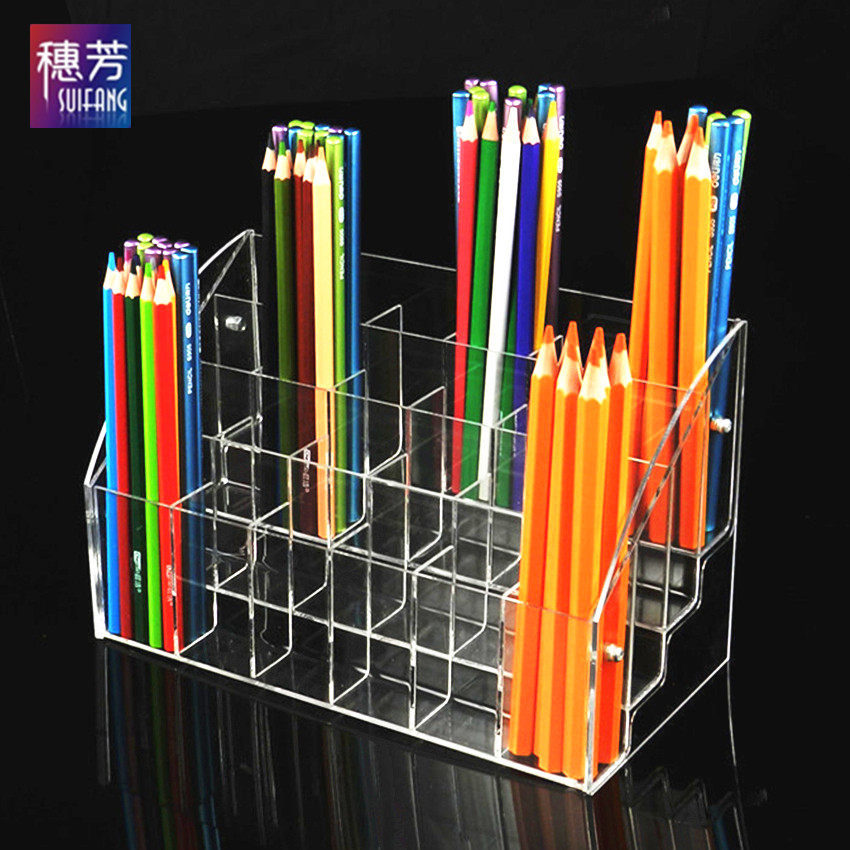 Makeup brush cylinder mouth red finishing table top comb transparent acrylic color makeup eyebrow pen powder brushed cosmetic containing box