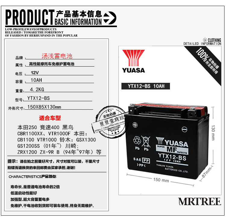Yuasa locomotive battery YTX12-BS battery 12v10ah Honda 250 Spring Breeze 650 400 300 NK