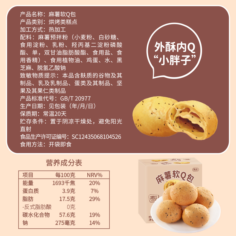 (共8包)麻薯面包100g 送100g(发200g 箱仅11 9) (共16包)麻薯面包200g 送200g(发2箱仅1