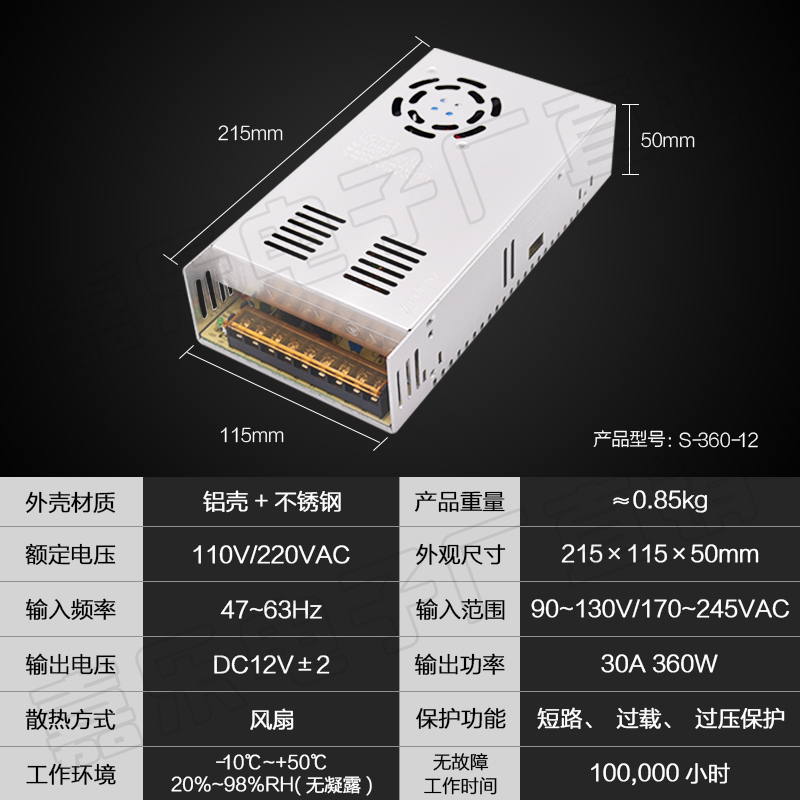110V 110V 220V turn 12V30A switching power supply 12V monitoring centralized power supply DC12V360W power transformer