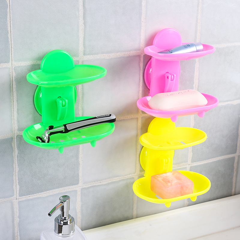 Powerful suction cup double layer soap case wall-mounted drain perfumed soap rack free of punch make-up room soap shelf soapy shelf