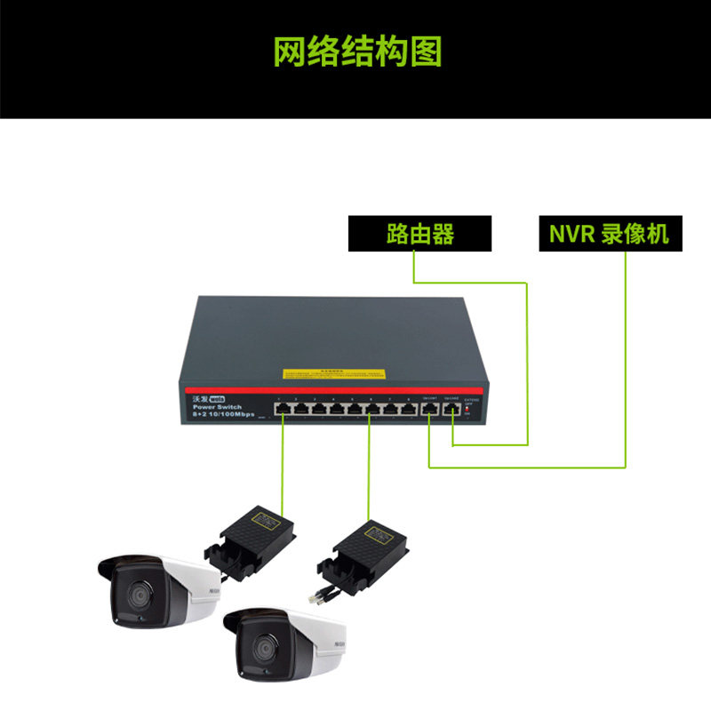 hiwofa standard POE splitter 48-55V to 12V 2A transfer cable supports camera waterproof power supply
