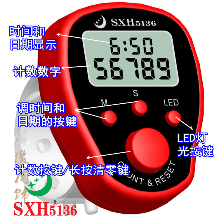 (Shoot 3 get 1 free) New with time luminous electronic counter Finger ring type flow statistics counting device