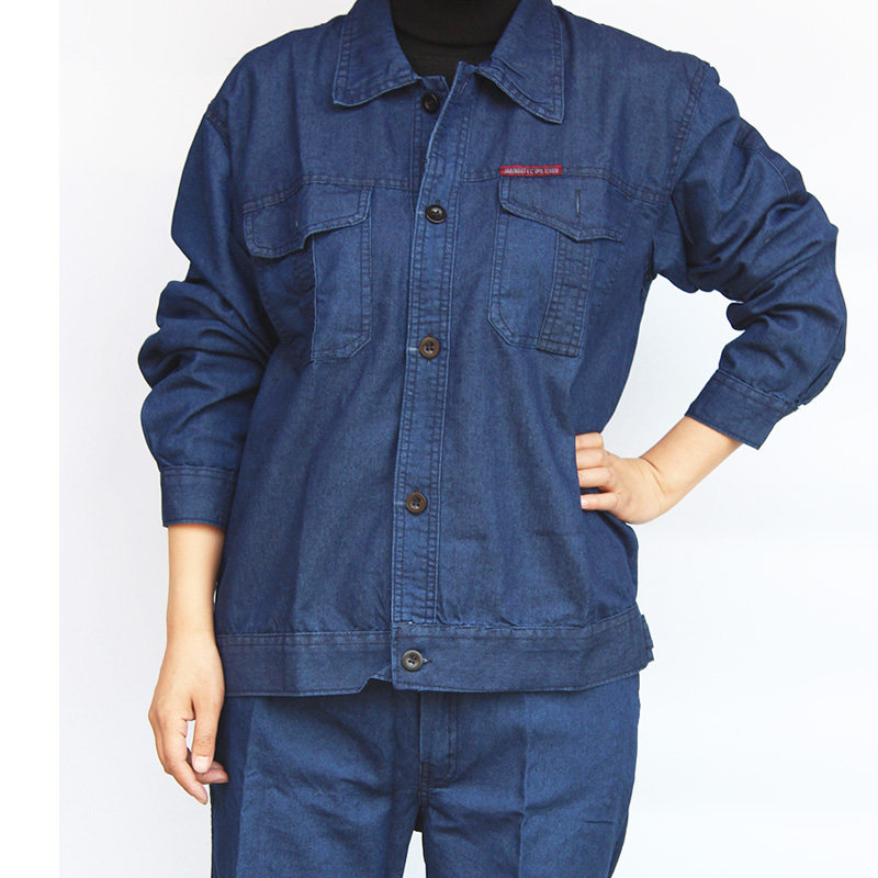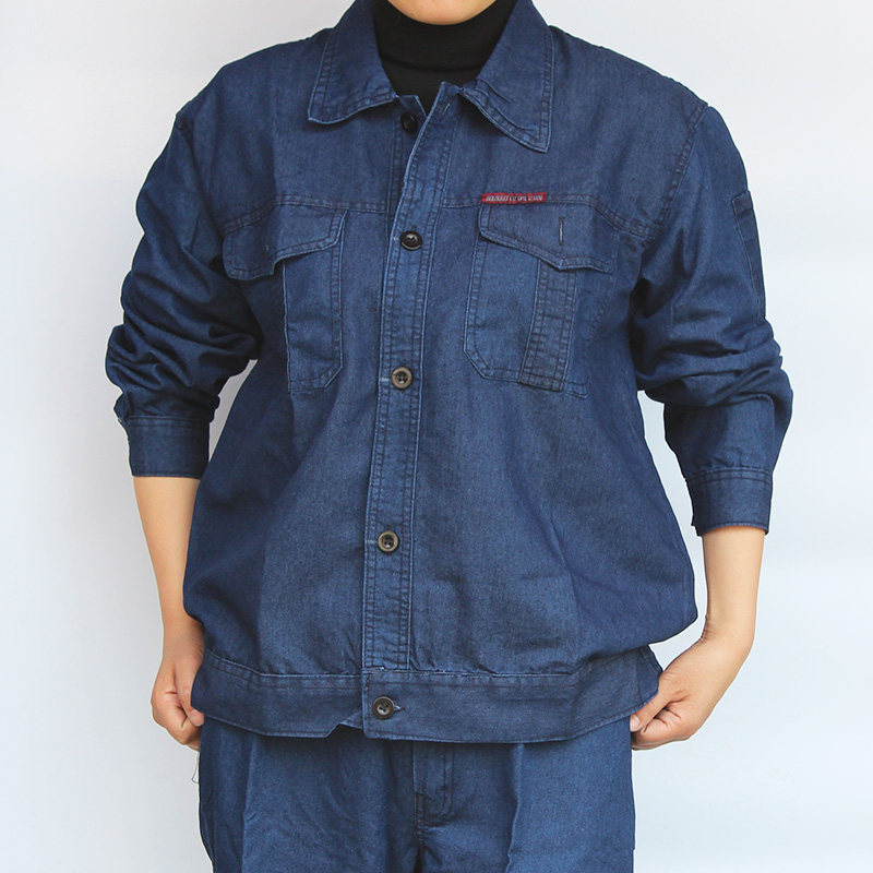 Summer long-sleeved denim overalls suit male welder thin welding suit labor insurance clothing anti-scalding cotton wear-resistant auto repair