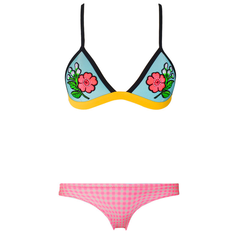 March19 embroidery steelless tonic triangle bikini European and American three-piece set beach vacation sexy split swimsuit woman