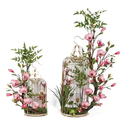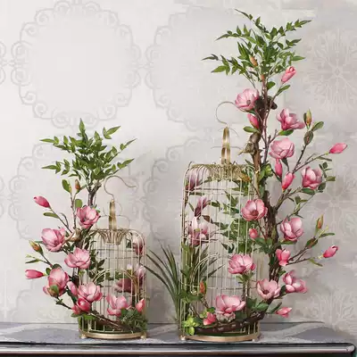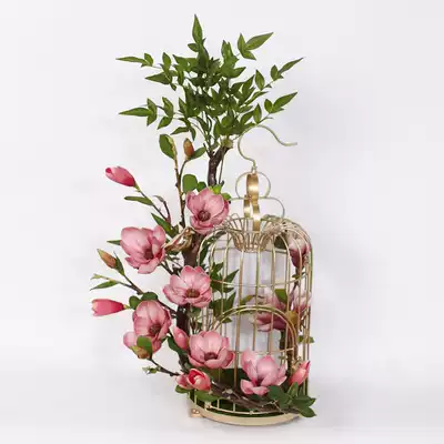 Large European birdcage lobby hotel model room Chinese Magnolia floor-to-ceiling decoration simulation floral art fake flower ornaments