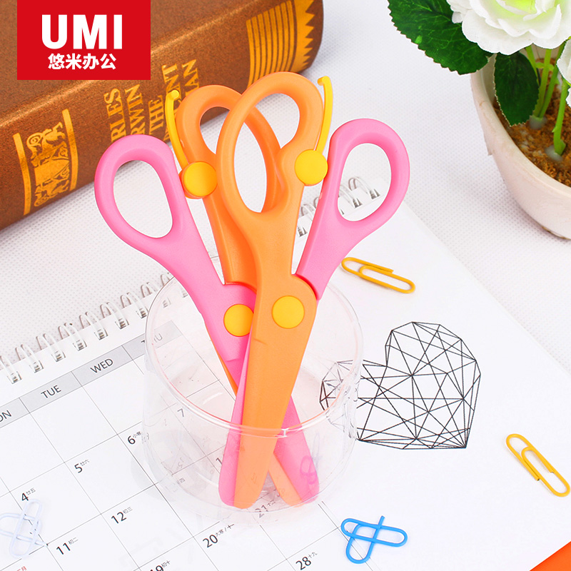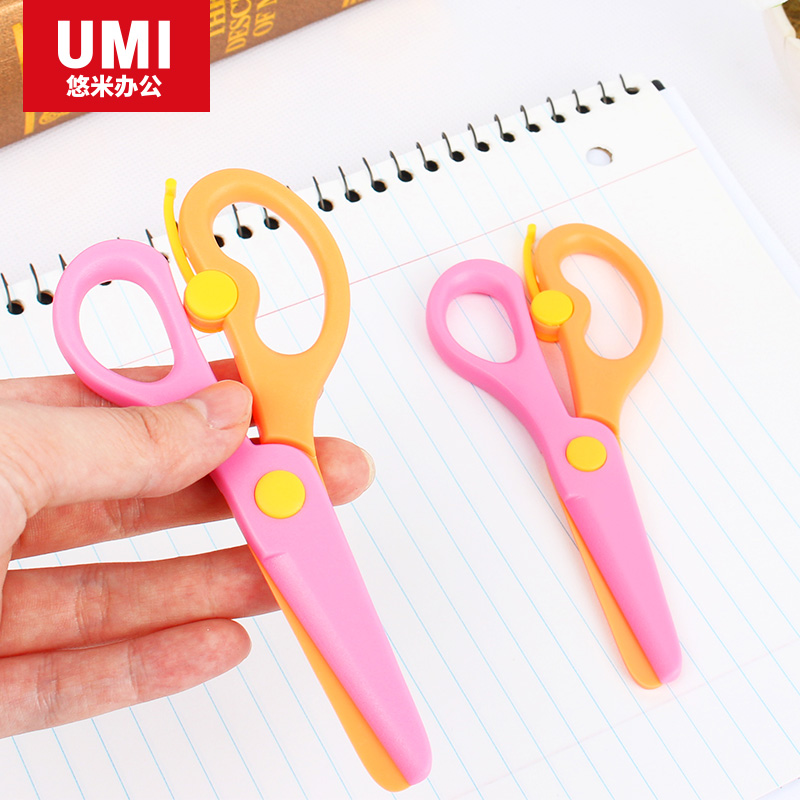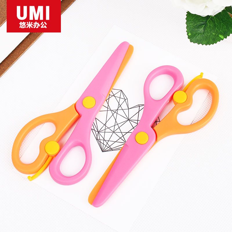 Yumi B01001P baby safety scissors elastic scissors children hand-cut students creative effort-saving orange pink scissors safe hand-knife student stationery handmade plastic safety small scissors