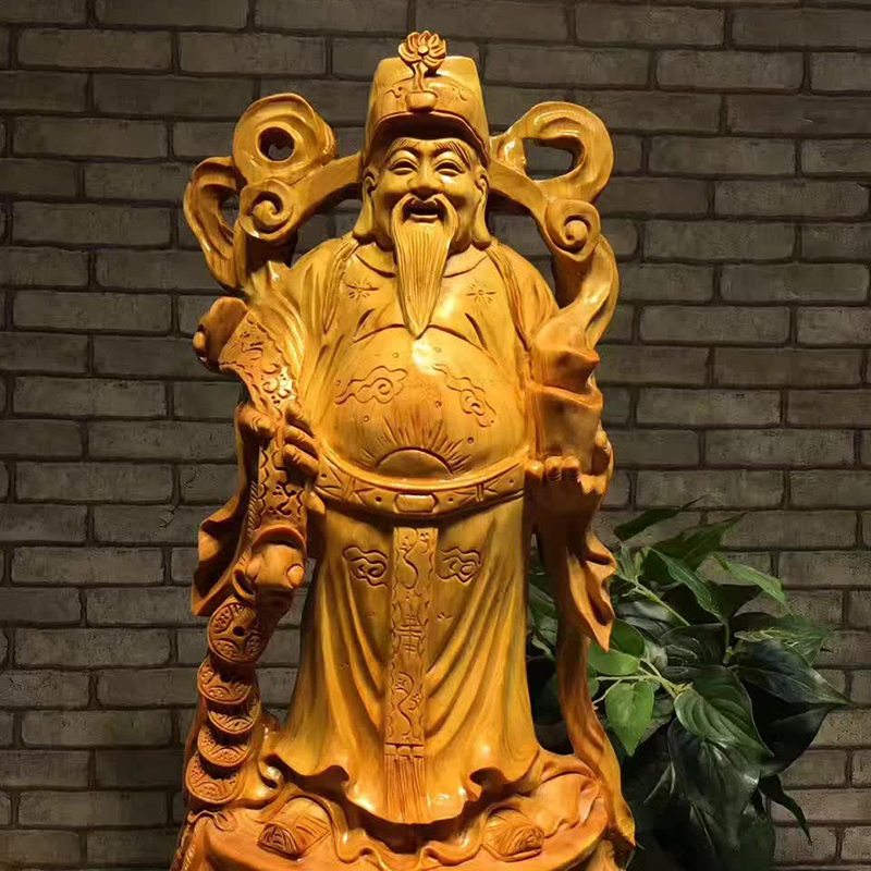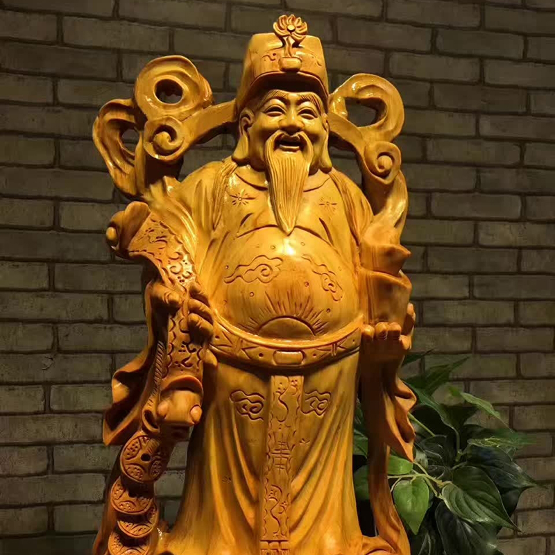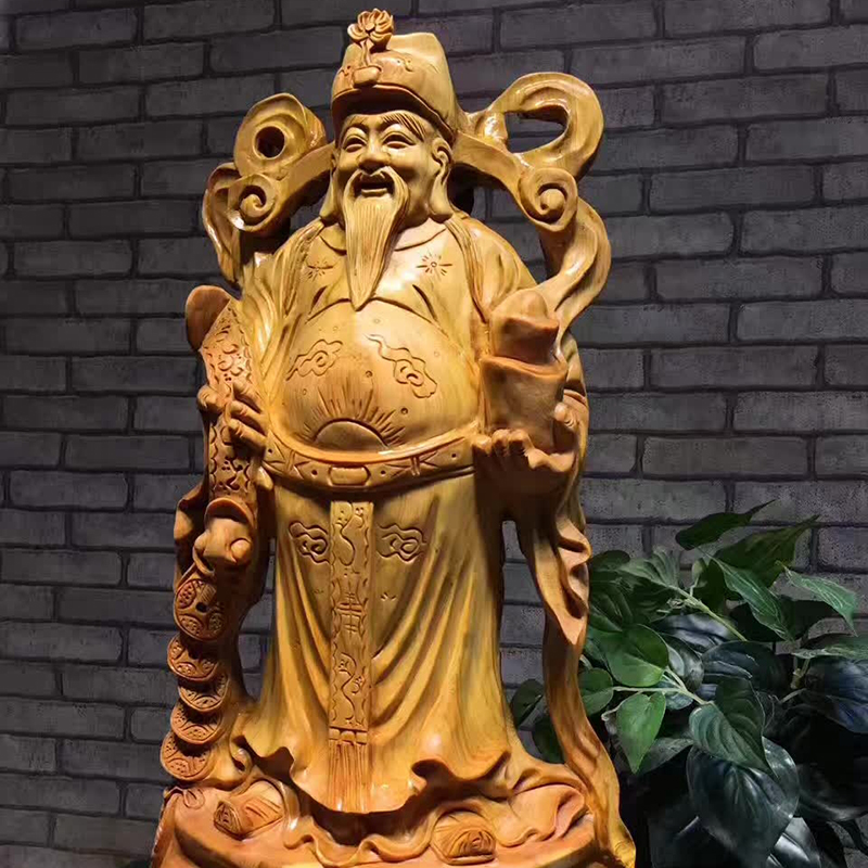 Muyugen Carving Factory God of Wealth hand-carved Qinling Cliff Cypress Houseware Ornament Direct Sales Lucky Fortune