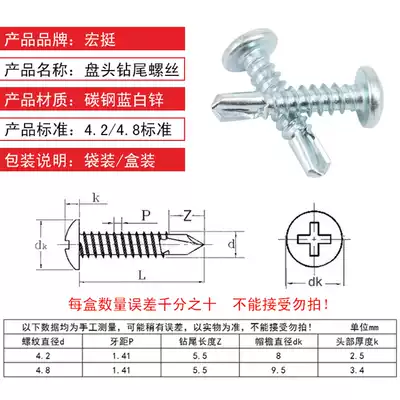 Hongting cross pan head drill tail screw national standard round head self-drilling self-tapping dovetail wire self-tapping nail M4 2 4 8