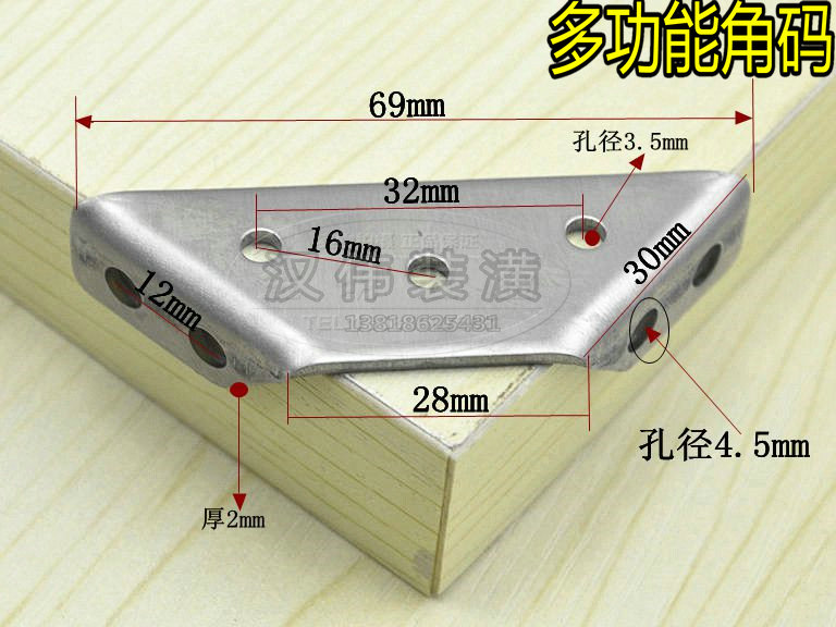 Thickened stainless steel corner code three-sided fixed multi-function furniture hardware link accessories laminate bracket 90 degree angle iron