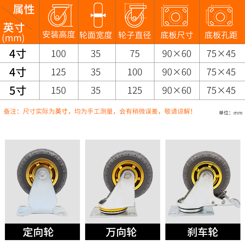 3 inch universal wheel wheel 45 inch heavy duty base with brake trolley wheel Silent rubber wheel trolley caster