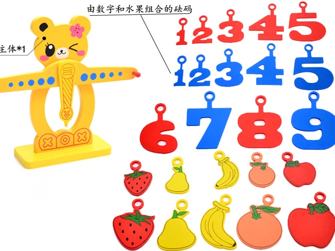 Wooden children Early teaching Puzzle Kindergarten Class Middle Class Large Class Area Angle Teaching Aids Small Bear Balance Scales Toys