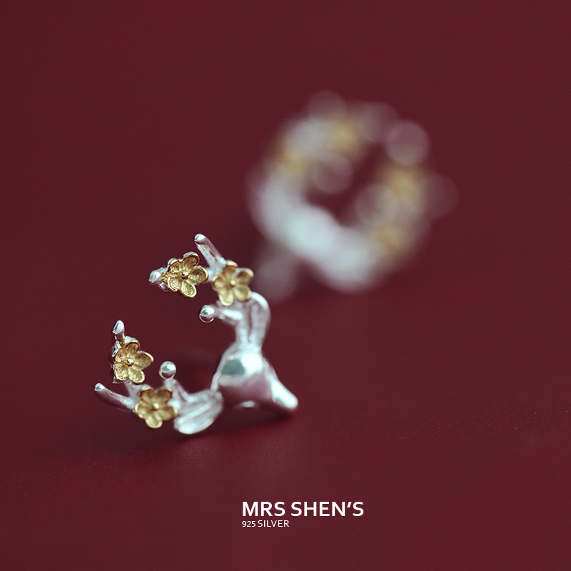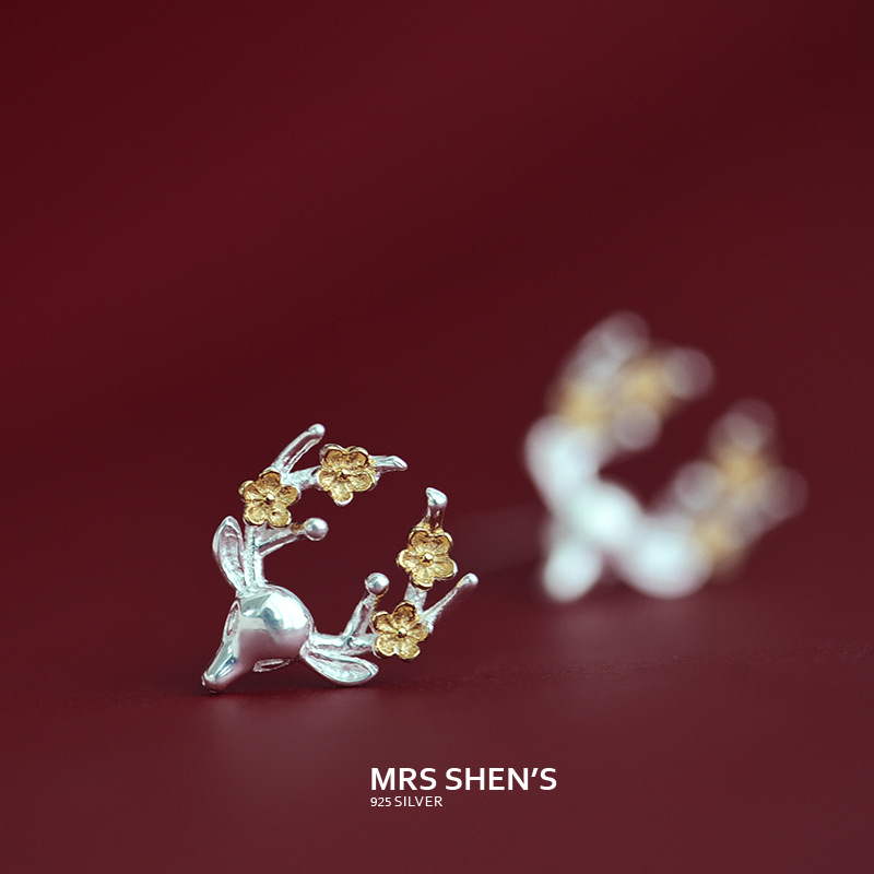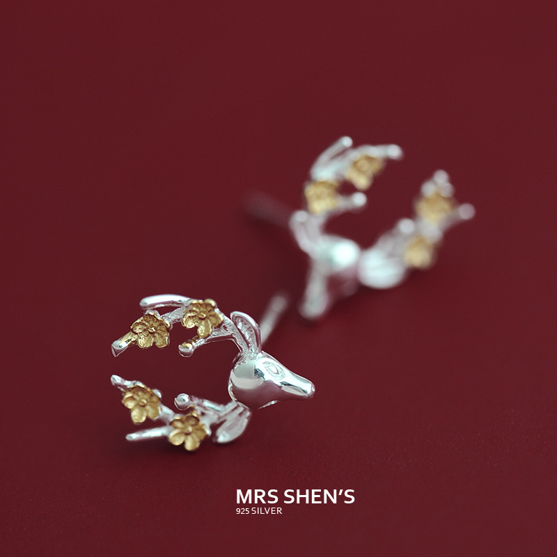 Japan-ROK 925 Silver Christmas Birthday Ear for female Creative Little Elk Deer Ear Accessories of Japan-Japan-ROK Edition Boomers Accessories Gifts