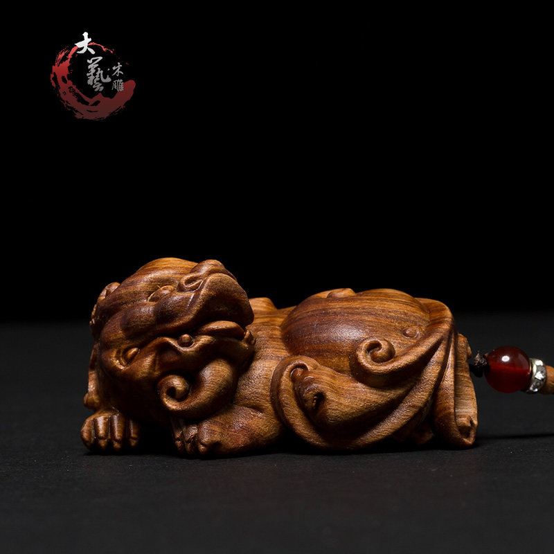 Sandalwood mythical xiu wood carving play hand to piece carving crafts feng shui fortune away evil spirits town house hanging wood decorations