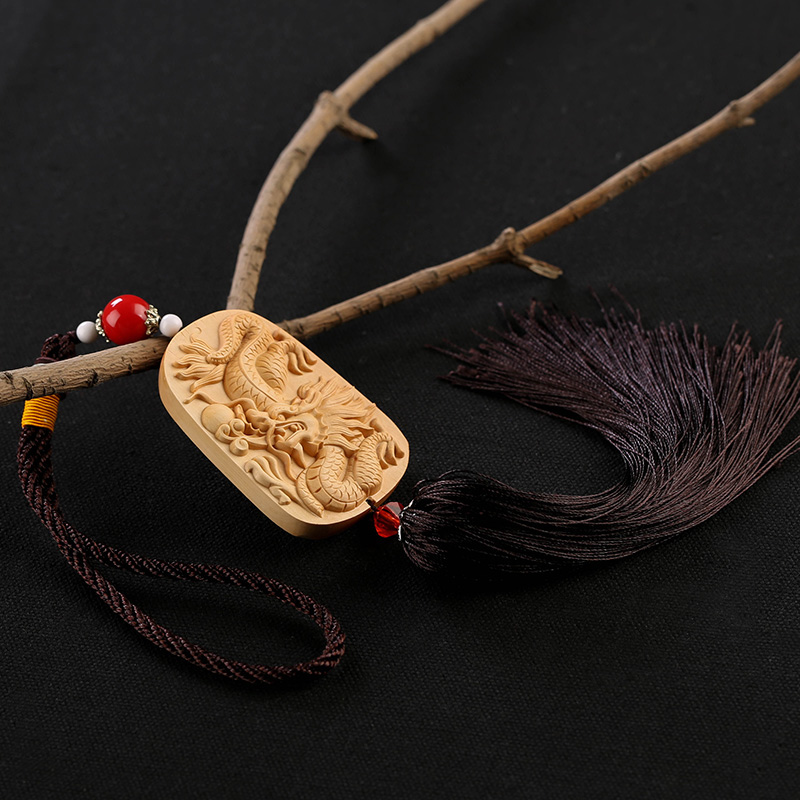 Boxwood carving Buddha brand tassel car pendant mahogany car jewelry ornaments dragon purchase universal handle