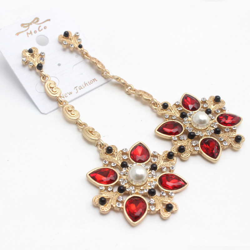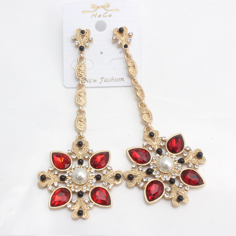 South Korea European and American Baroque exaggerated long version earrings retro palace style gem nightclub ear needle earrings female