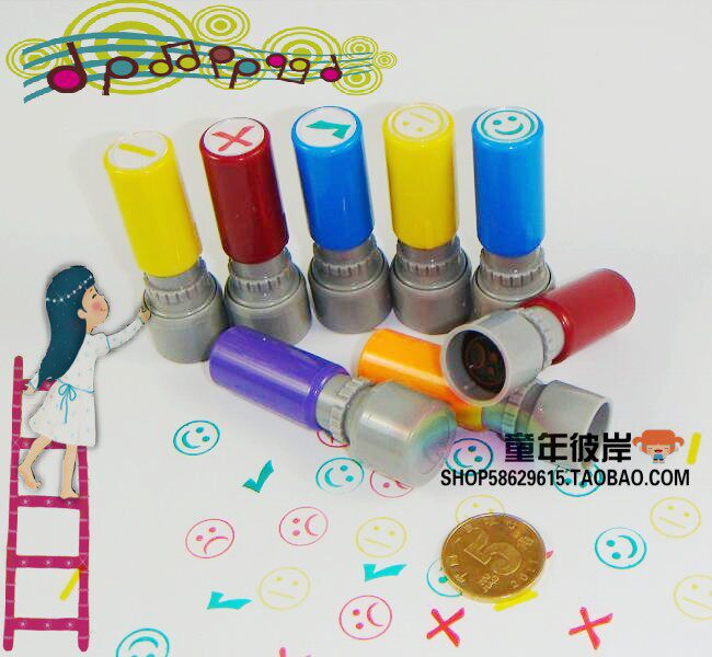 Small Red Flowers Smiley Face Seal Pentagram Stars Teacher Comment Encouragement Zhang Children Students Kindergarten Teacher Reward