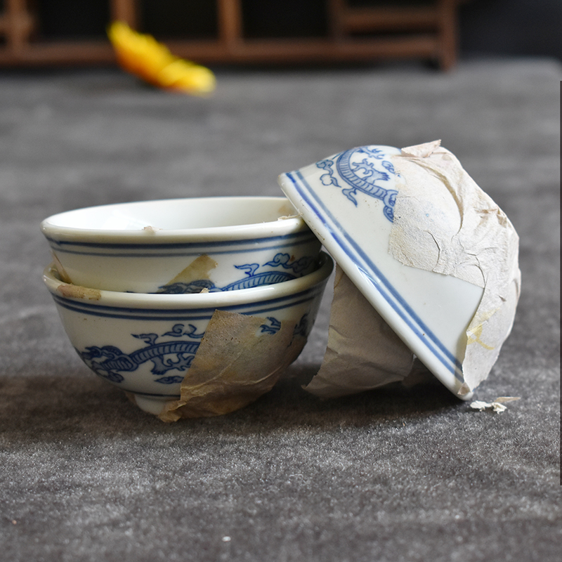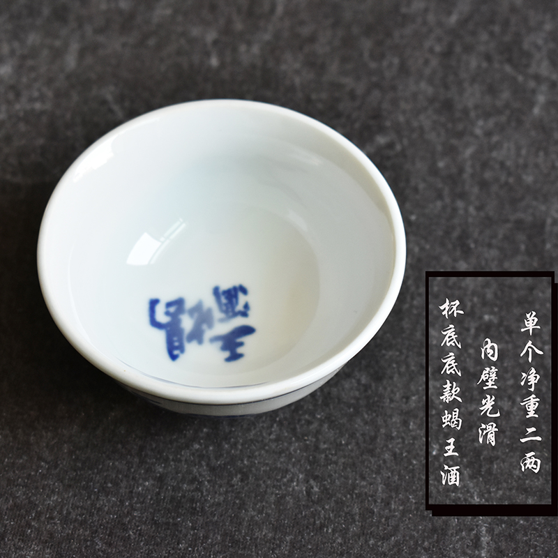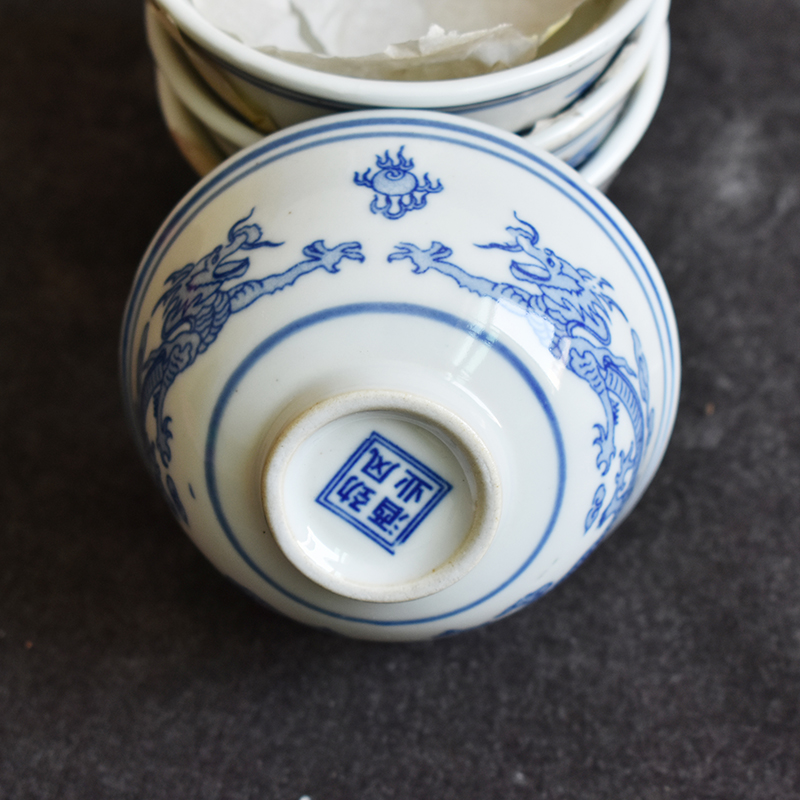 Jingdezhen Cultural Revolution Factory Shuanglong wins pearl blue and white tea bowl wine bowl tea cup ceramic cultural revolution old porcelain bag old