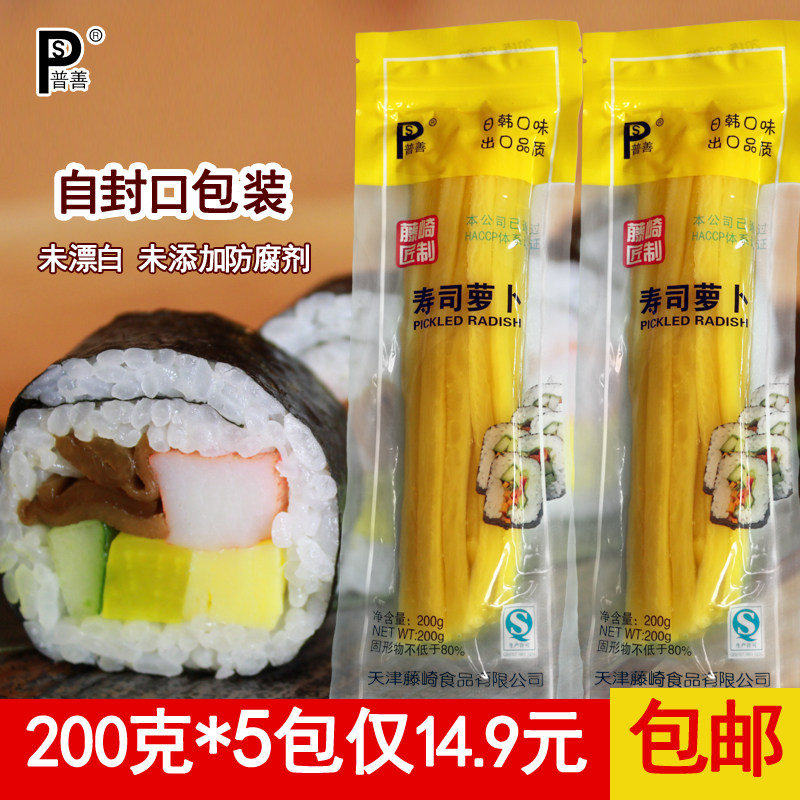 Pu Shan sushi radish strips 200 grams 5 packs of seaweed rice Big root strips Sour radish sushi ingredients