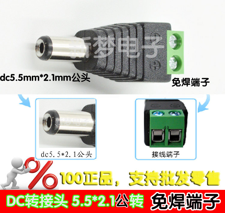 DC5 5 * 2 1 public green terminals 12V with wire column power supply plug terminals surveillance cameras free of welding