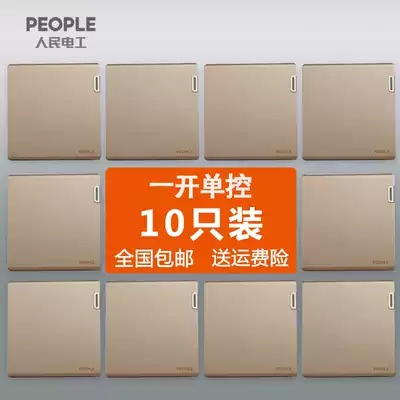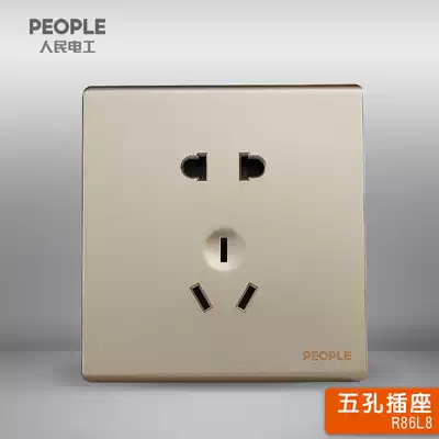People's electric champagne gold switch socket package 86 type misplaced five-hole panel oblique 5-hole two-three plug 10pcs