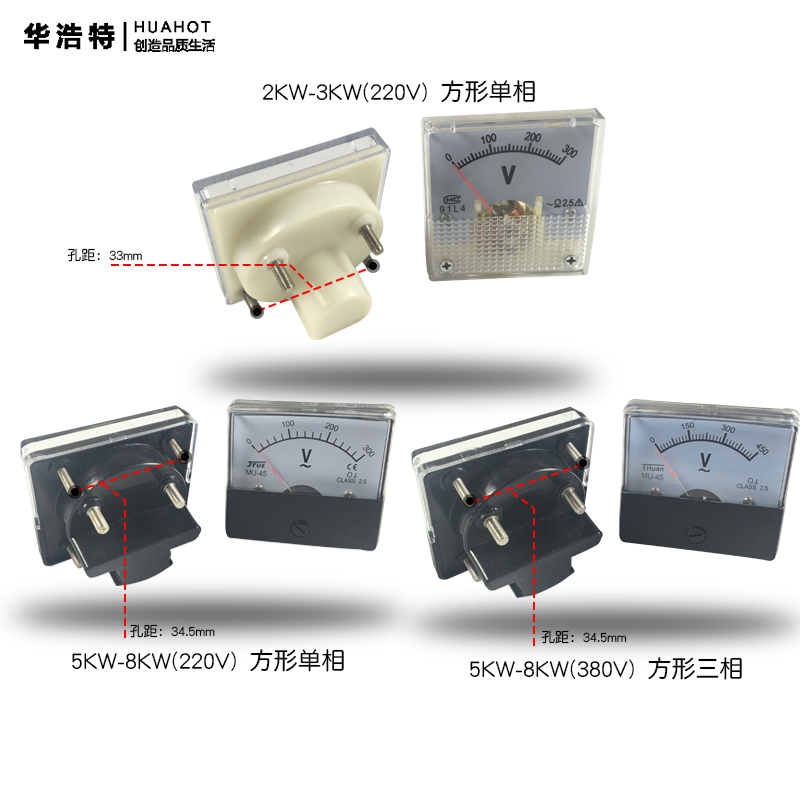 2-3KW 220V square voltmeter 5-8KW 220V square single-phase voltmeter 5-8KW 380V square three-phase voltmeter 5-8KW 22