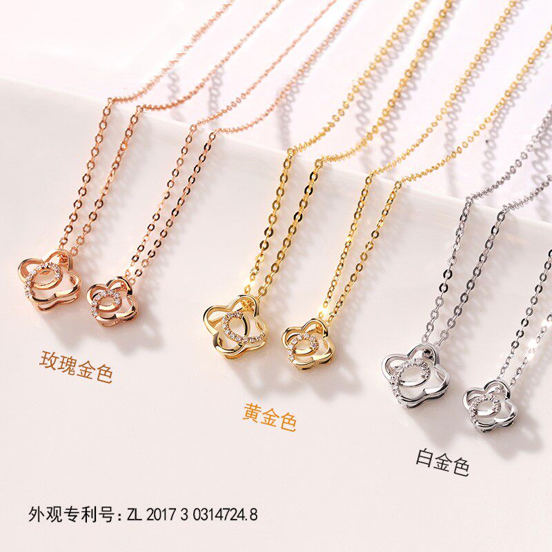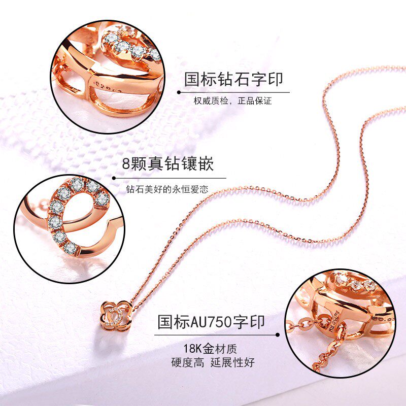 18K gold necklace female four-leaf clover diamond pendant rose gold niche 2021 new birthday gift