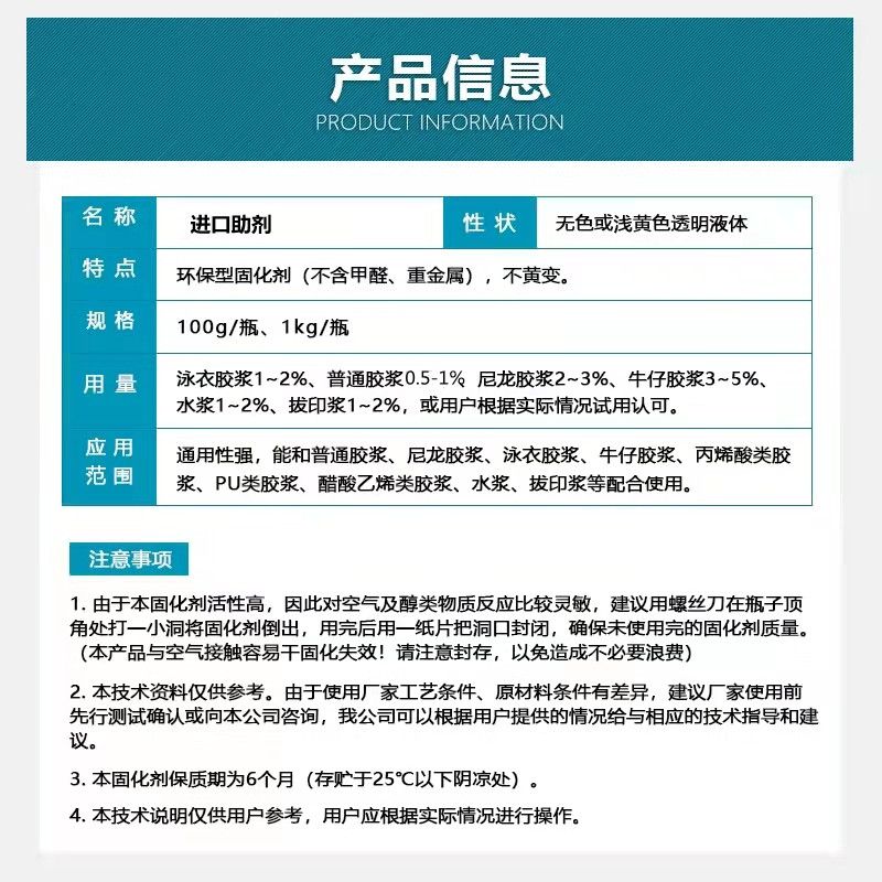 Manufacturer direct sales 1 kg domestically made solid stain catalyst Shenxian viaduct printing aid crosslinker