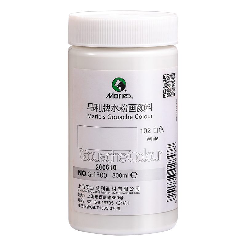 Mulley Water Powder Paint 300ml Titanium White Advertising Condensed Large Bottle Canned Horsepower Mary Mari Fine Arts Students Special Collection Training Students Draw Children Watercolor Tools With Beginners