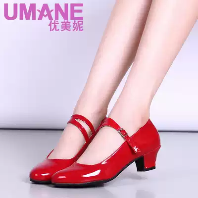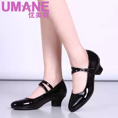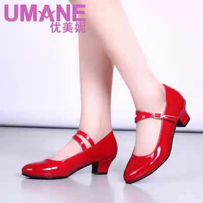 Umeini 2021 autumn teacher shoes dance shoes female adult Middle heel soft bottom silver square dance shoes yangko dance shoes