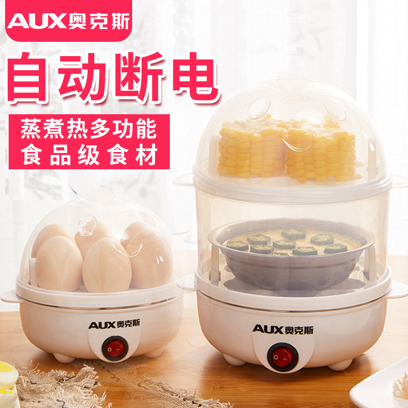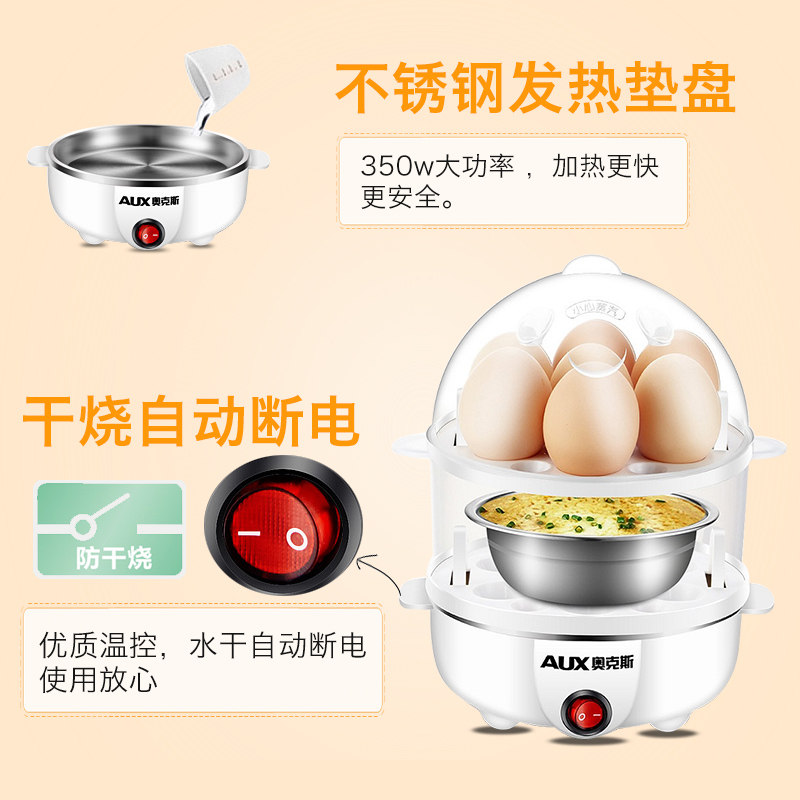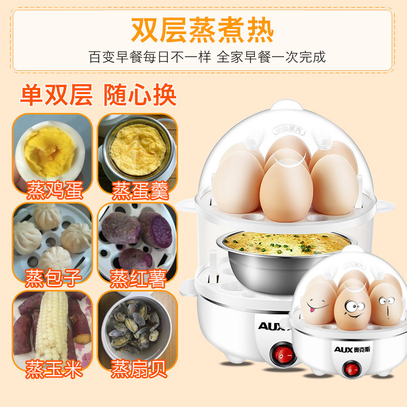 Oakes Boiled Egg machine multifunction stainless steel double layer egg machine Automatic power off mini chicken egg spoon small steam egg steamer
