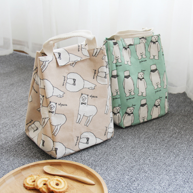 lala yellow (boxed bag) white geometry (boxed bag) grey cat (boxed bag) white bear (lunch bag) black geometry (lunch bag)