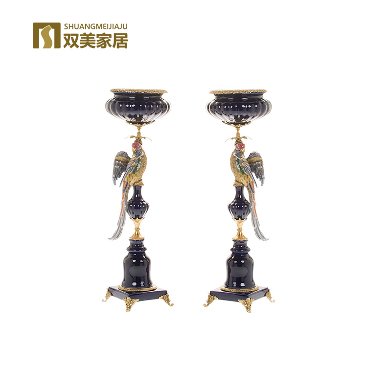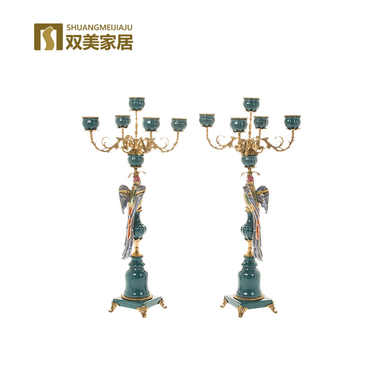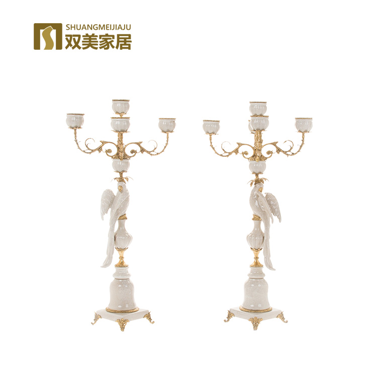 Luxury European American dining table Home decoration ornaments high-grade ceramic inlaid copper candlestick craft gift decoration