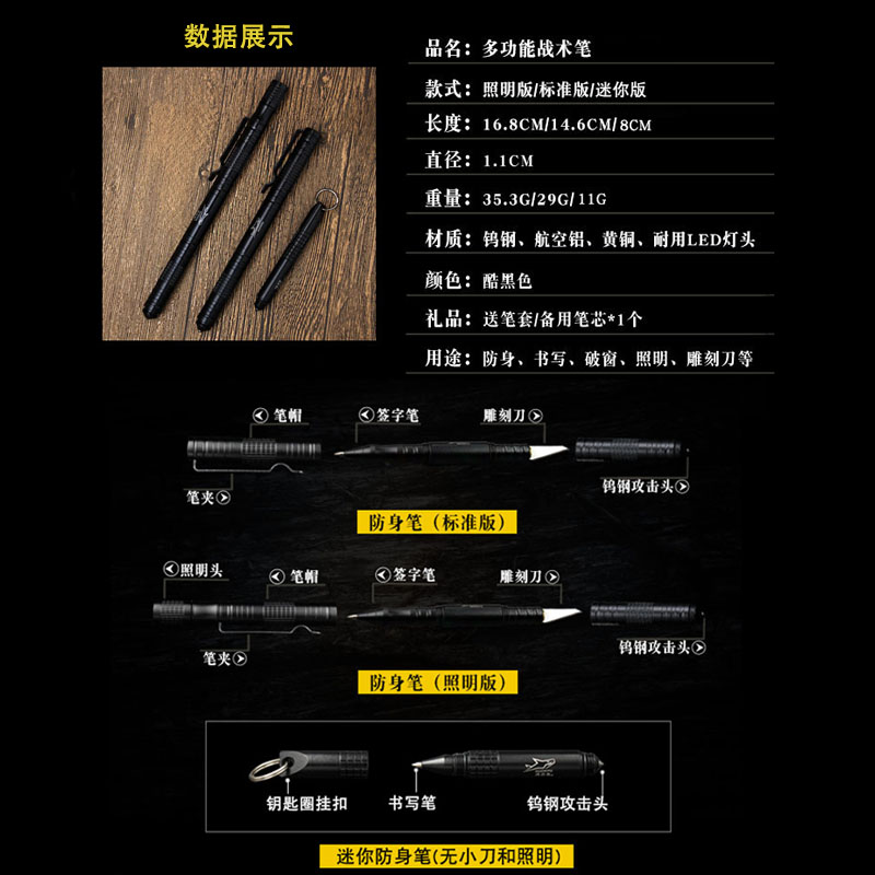 Multifunctional tactical pen mini anti-wolf artifact anti-bad guy defense weapon supplies women's protective hidden weapon self-defense pen