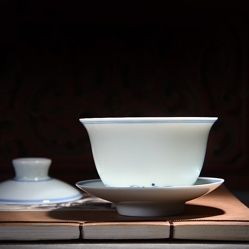 Kaimunju Jingdezhen Blue and white cover bowl ceramic tea set set Private custom household set of Kung Fu tea gifts