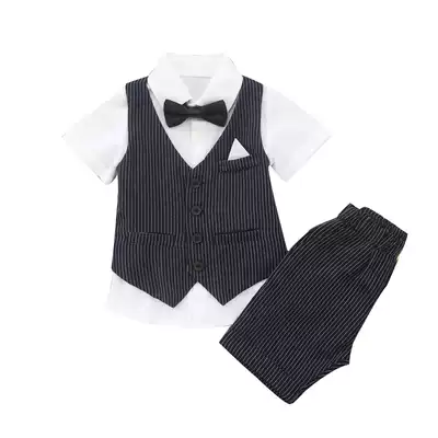 Navy Blue Striped vest 3-piece set Purple Striped vest 3-piece set Green Striped vest 3-piece set Black Striped vest 3-piece set White vest shorts Black shirt Free tie Black vest Shorts