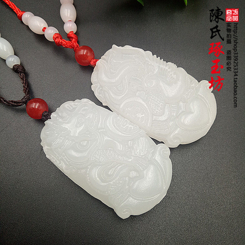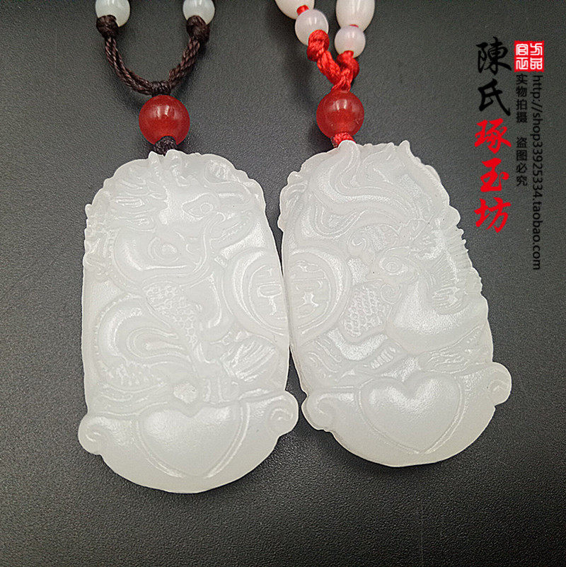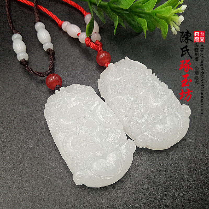 Afghan white jade double happiness dragon and phoenix couple on jade pendant neck ornament jade pendant men and women style jade pendant