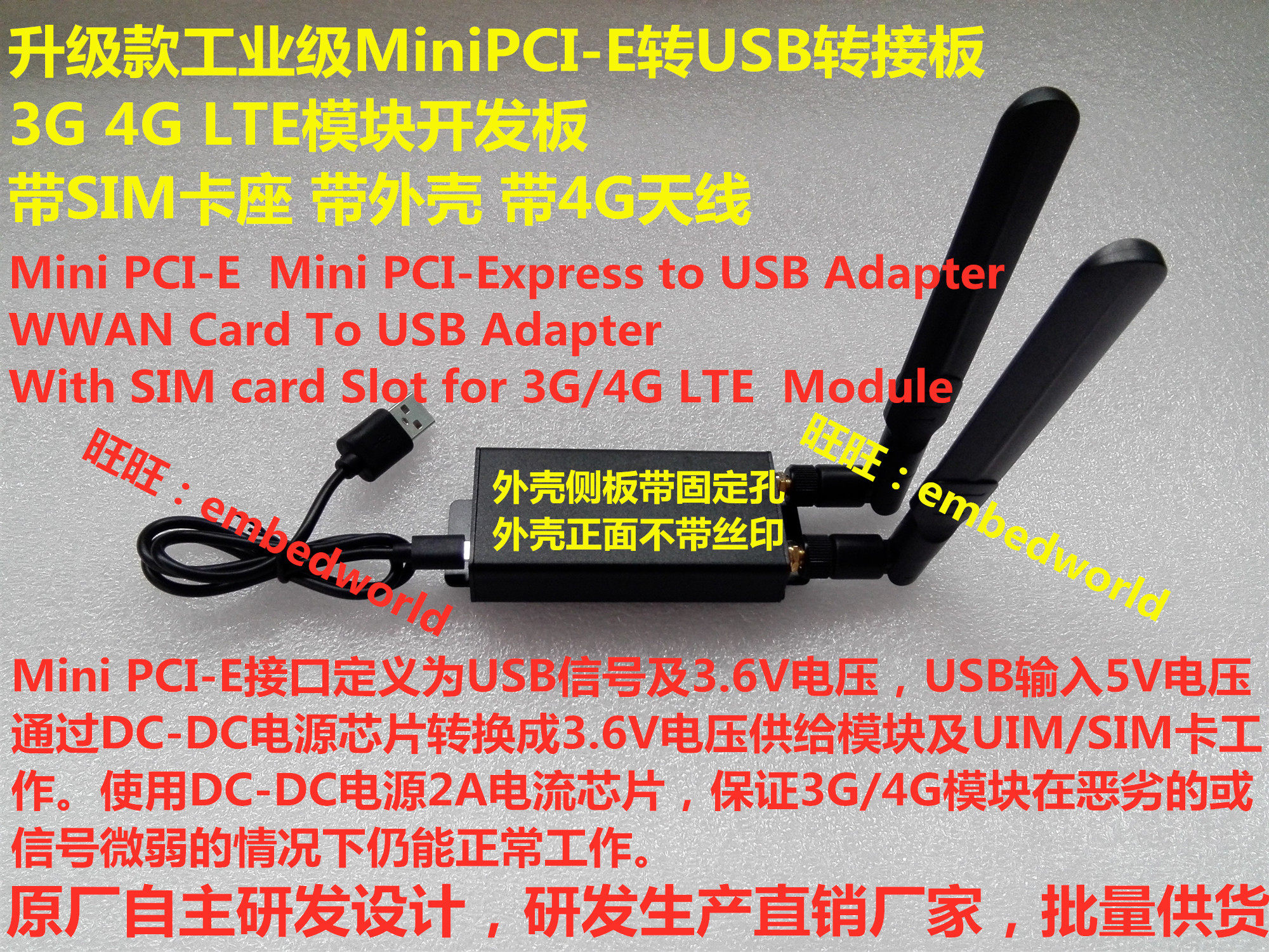 MiniPCI-E to USB Adapter Board SIM Card Slot w/Housing Antenna ME909S-120 4G Module Development Board