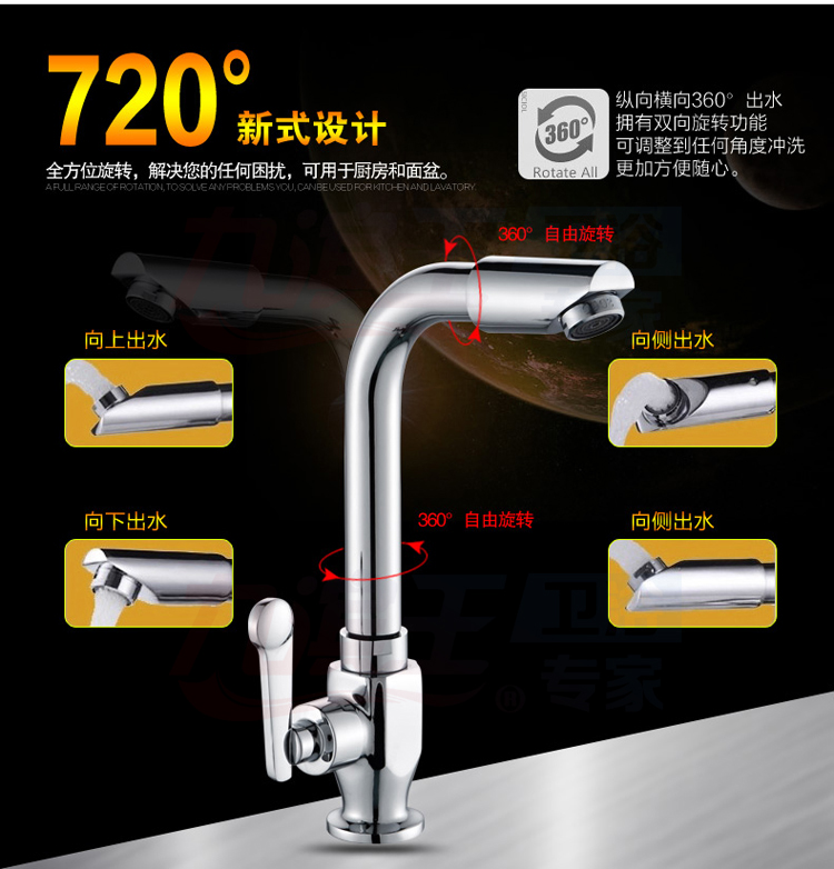 Copper kitchen faucet rotating single cold washbasin sink faucet basin washbasin universal 720°rotation