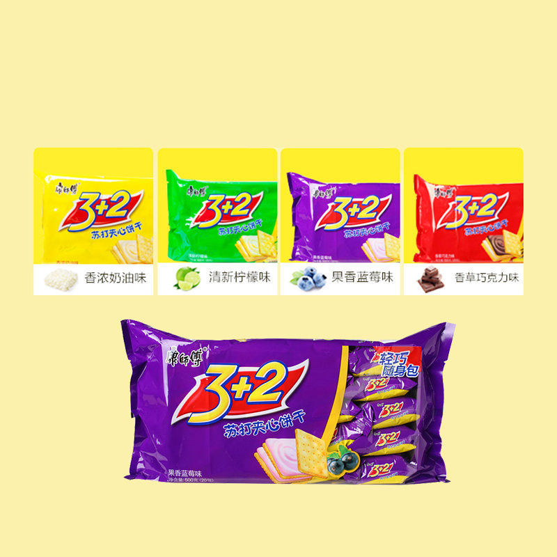 Master Kong 3 2 Soda Sandwich Biscuit 500g Chocolate Cream Blueberry Lemon Breakfast Cake Snacks Snacks