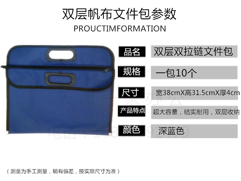 Multilayer double zipped file bag Package A4 Information kit Canvas Handbag Business Bag Invoice Bag Tianjin Custom-Taobao