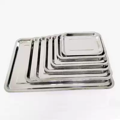 Stainless steel square plate rectangular tray barbecue plate household iron plate plate shallow dumpling plate tableware deepening plate