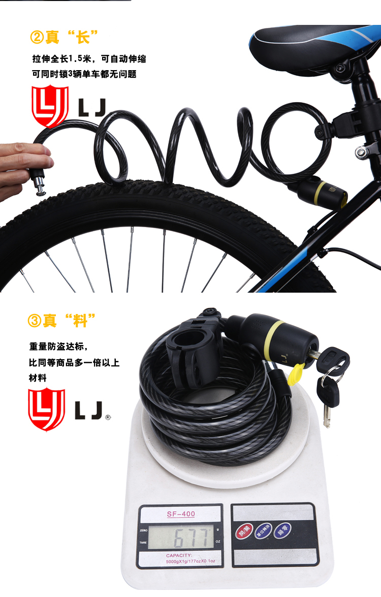 Taiwan LJ Stand one trillion 1 5 m Bike Lock Mountaineering Car Ring Type Lock Wire Cable Electric Car Electric Bottle car burglar lock