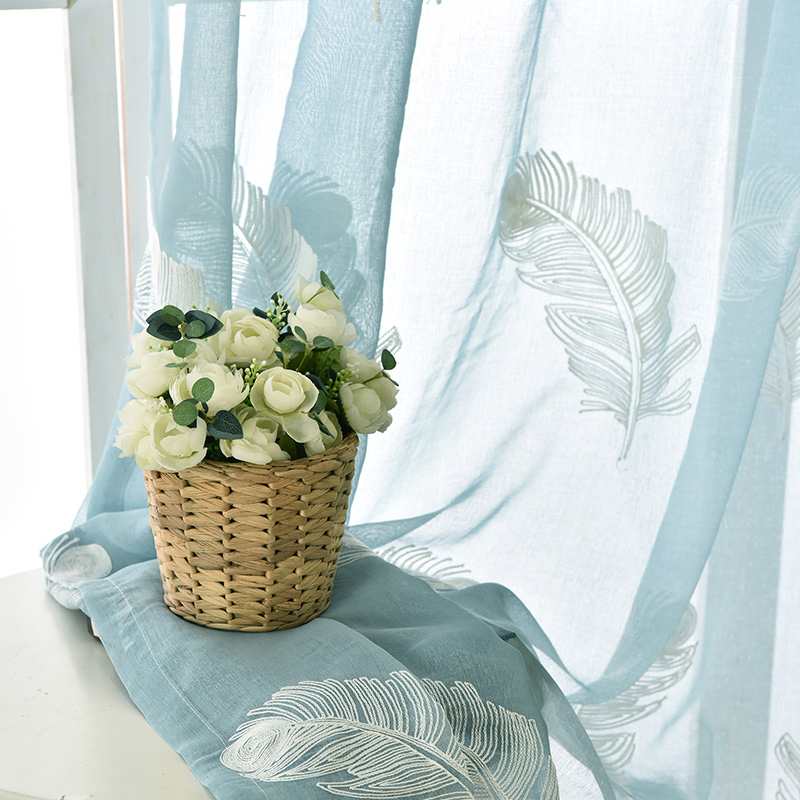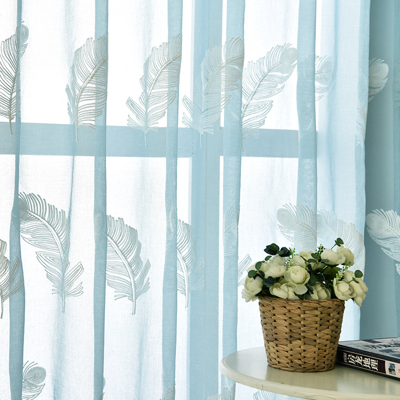 American modern embroidered cotton linen yarn curtain eco-friendly bedroom living-room floating window balcony partition floor yarn blinds clear cabin