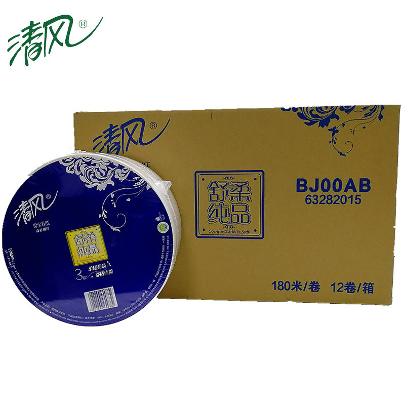 Qingfeng large roll paper three layers 180 meters native wood pulp large disk paper roll toilet paper toilet paper Guangdong