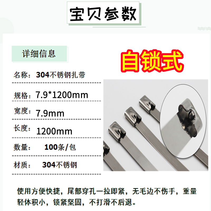 Outdoor 304 stainless steel tie bondage buckle 7 9 * 1200mm Iron wire signage fixed disposable anti-theft bar 8