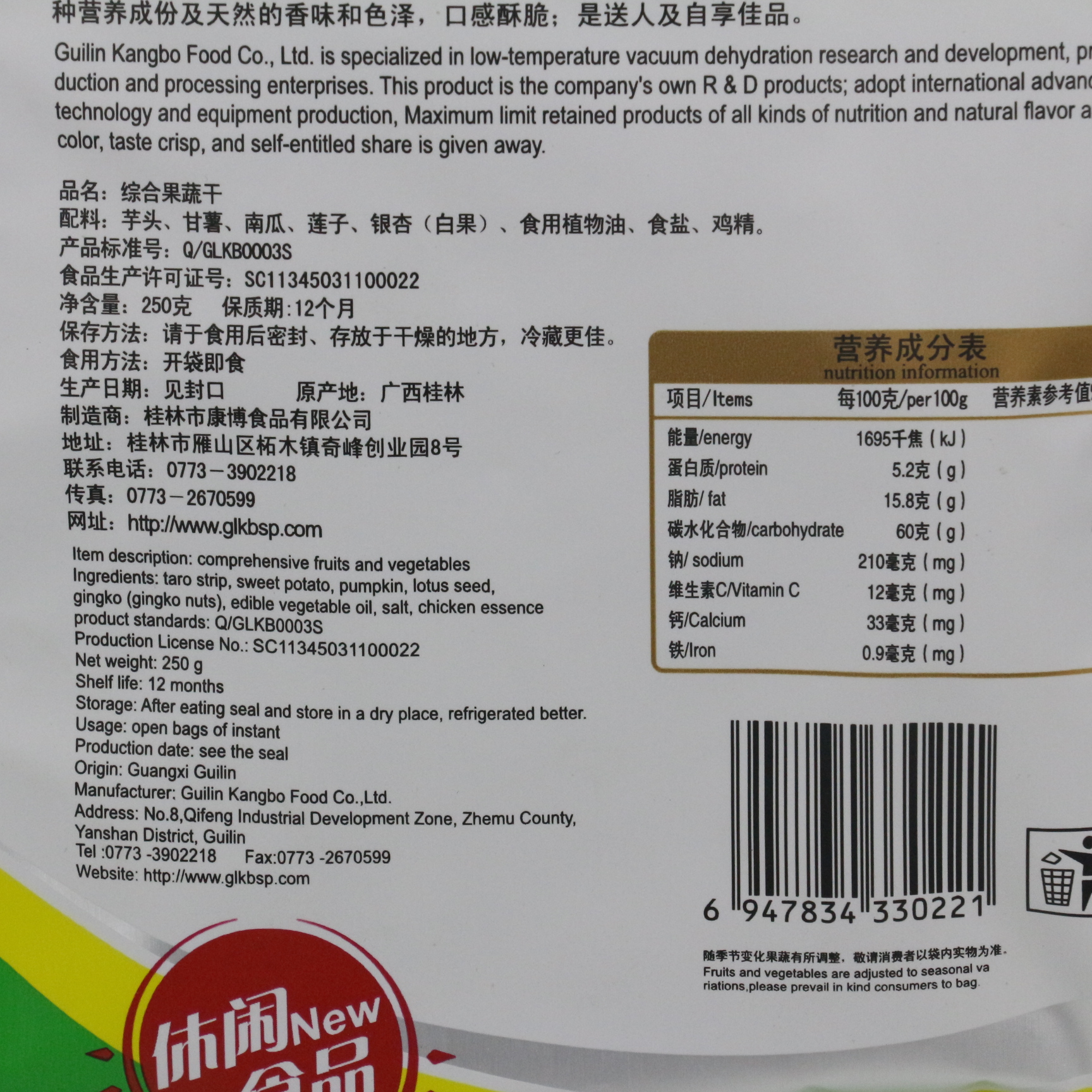Guangxi Guilin specialty Kangbo 250g comprehensive fruit and vegetable dried taro sweet potato purple fries Ginkgo dried pumpkin